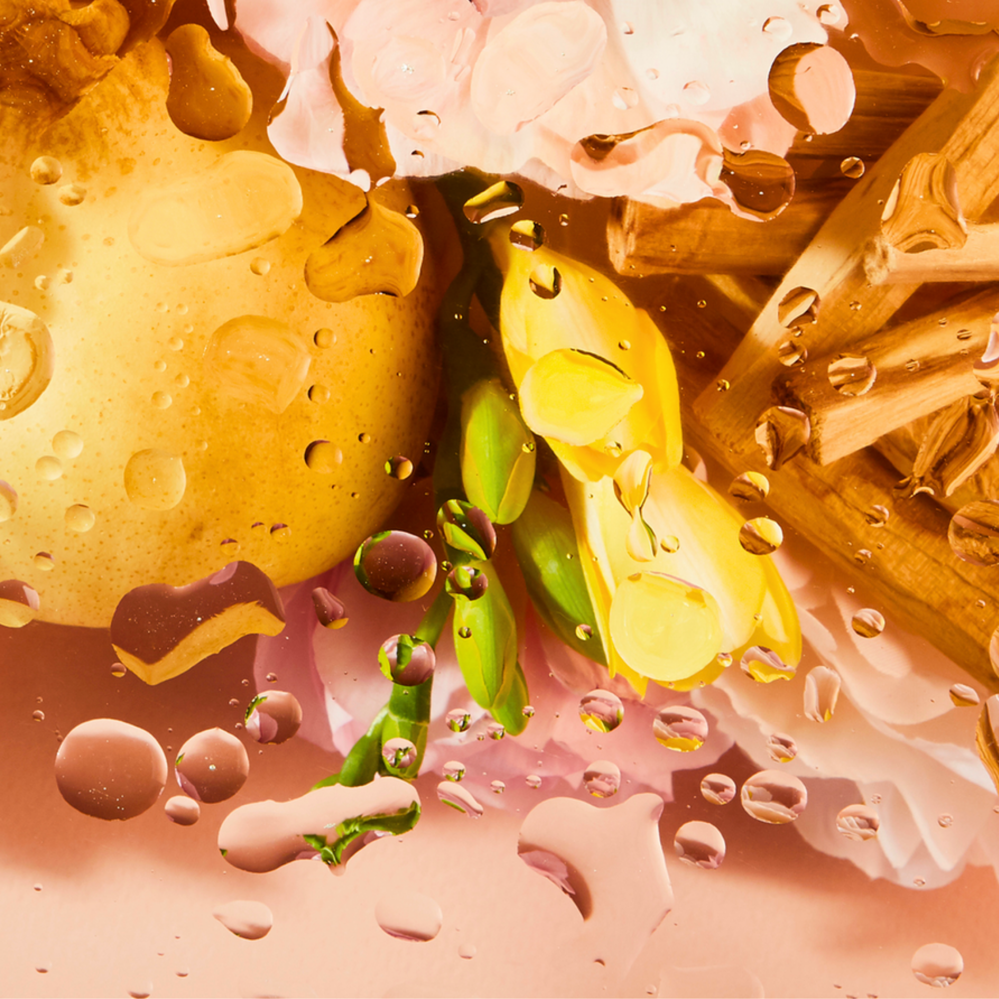 Methyldihydrojasmonate, Florol, Helvetolide, Benzyl Acetate, Magnolane, Verdyl Acetate, 4-tert-Butylcyclohexyl Acetate, Methyl Pamplemousse, Ambroxan, Hexyl Acetate, Phenethyl Alcohol, Allyl Caproate, Dihydromyrcenol, 3-Hexenol, Bacdanol, Gamma-Decalactone, Gamma-Undecalactone, Methylbenzyl Acetate, Nonadienol Trans 2 Cis 6, Phenoxyethyl Isobutyrate, Cis-Jasmone, Ethyl 2-Methylvalerate, Floralozone, Veloutone, Ethyl Methylphenylglycidate, Patchouli Oil.